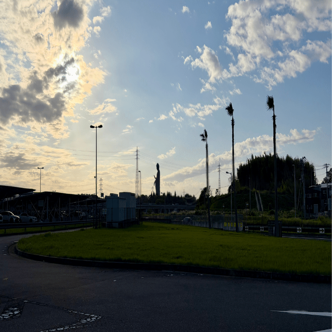 遠くには、ギネスに認定されている高さ約120メートルの牛久大仏が見えます